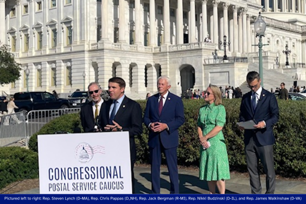 Several members of Congress attended the announcement of the bi-partisan Congressional Postal Service Caucus, with the intent of keeping the US Postal Service a strong, viable public service into the future. The Congressional Postal Service Caucus will focus on improving on-time delivery rates, protecting postal employees, and stopping harmful facility consolidations that reduce access in rural and underserved areas. NAPS is proud to support the efforts of this bi-partisan caucus.