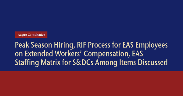 NAPS noted that Sorting and Delivery Centers (S&DCs) have been online in various parts of the country for quite some time. NAPS asked for these facilities’ EAS staffing matrix—specifically, what is the plan to provide managers in these facilities? NAPS previously has suggested a joint workgroup to develop these staffing models with the USPS in accordance with Title 39, Section 1004(b).
