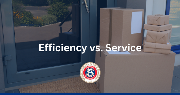 The U.S. Postal Service provides a clear example of the tension between efficiency and service. The agency must balance being a public service while operating like a business. When the USPS focuses on efficiency—delivering mail faster and cheaper with fewer resources—we see the following: