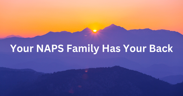 My stress level was extreme. If I were not a NAPS member, I would have been committed to the psych ward. My NAPS family was there to help me when I was pushed to the edge.